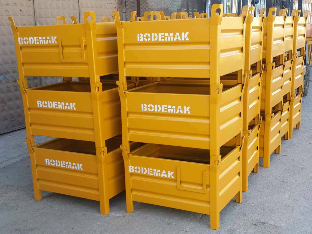 Yüksek mukavemetli çelik malzemeden üretilen kasalarımız; uzun ömürlü kullanım, yüksek taşıma kapasitesi ve istiflenebilir yapısıyla üretim ve depo süreçlerinde büyük kolaylık sağlar.